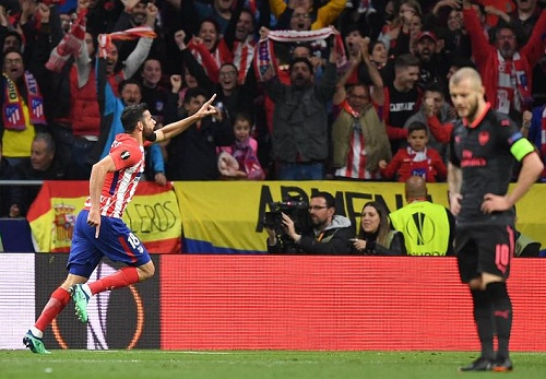 Không những không thể ghi bàn, Arsenal còn phải nhận bàn thua ở phút bù giờ hiệp 1. Người đã giúp Atletico Madrid giành vé vào chung kết Europa League là Diego Costa.