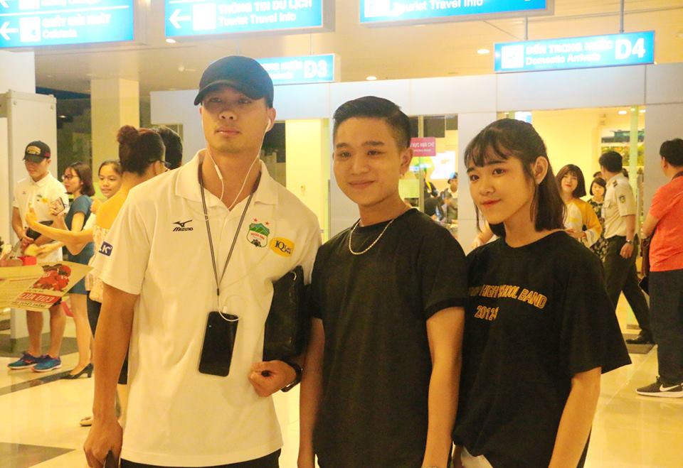 Công Phượng được nhiều CĐV xin chụp hình ở sân bay. Ảnh: Minh Trung