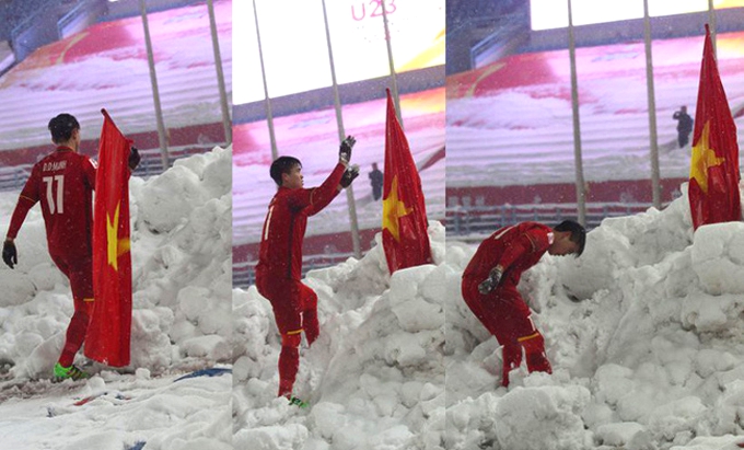 Một hành động có ý nghĩa lớn lao vô cùng. Giữa cơn mưa tuyết trắng xóa, lá cờ Tổ quốc ngạo nghễ bay trên màu trắng của tuyết vô cùng nổi bật, như tượng trưng tinh thần chiến đấu hết mình của các cầu thủ. Hình ảnh đắt giá này sẽ luôn ở trong tim mỗi người dân Việt Nam. Đó thật sự là hình ảnh hào hùng chạm đến tâm can của biết bao người.