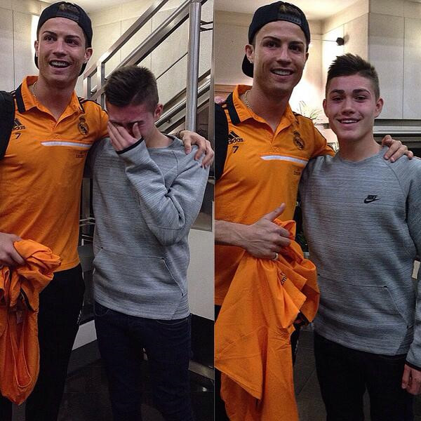 Một lần khác, fan của Cristiano Ronaldo bật khóc khi được gặp và chụp ảnh cùng thần tượng. “Hôm nay là một ngày không thể quên trong cuộc đời khi được gặp thần tượng Cristiano Ronaldo”, CĐV này sau đó đã chia sẻ trên Twitter cá nhân kèm tấm hình chụp cùng CR7.