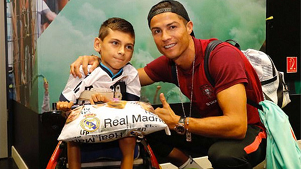 Trước trận Bồ Đào Nha gặp Hungary trong khuôn khổ vòng loại World Cup 2018, Cristiano Ronaldo gây bất ngờ cho một CĐV nhỏ tuổi ở Budapest.Tiền đạo 31 tuổi đã đến gặp cậu bé ngồi trên xe lăn, tặng áo thi đấu của Real Madrid và chiếc gối có biểu tượng của CLB Hoàng gia Tây Ban Nha.