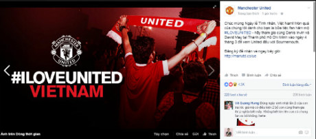 Ngày 14/2/2017, trang fanpage chính thức của CLB MU đã khiến NHM Việt Nam ngỡ ngàng khi gửi lời chúc mừng nhân ngày lễ Tình nhân Valentine (14/2).