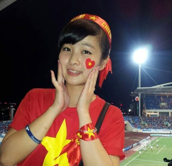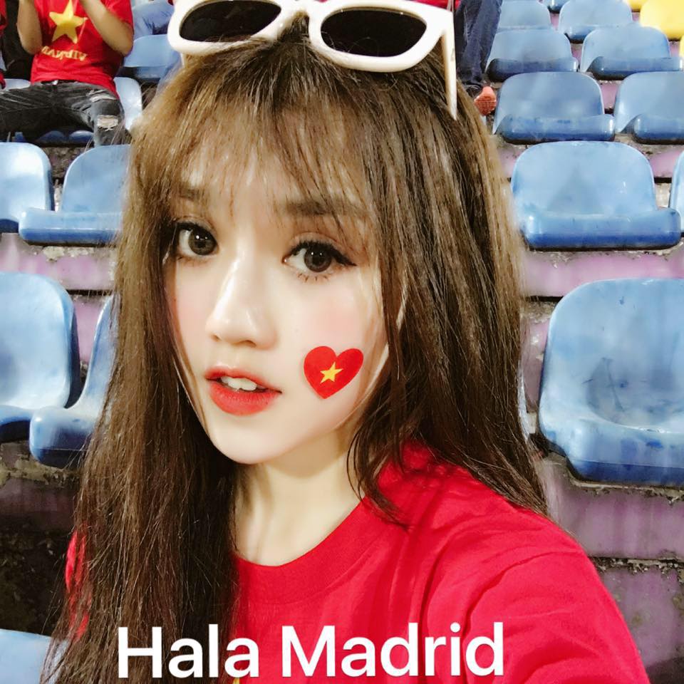 Bên cạnh đó, Bí Lùn (nickname của cô nàng) còn thường xuyên được nhìn thấy trên khán đài trong màu áo đỏ để cổ vũ cho tuyển Việt Nam thi đấu. Cô nàng sinh năm 1993 không ít lần lặn lội từ Nam ra Bắc, thậm chí sang nước ngoài để “tiếp lửa” cho đội nhà.