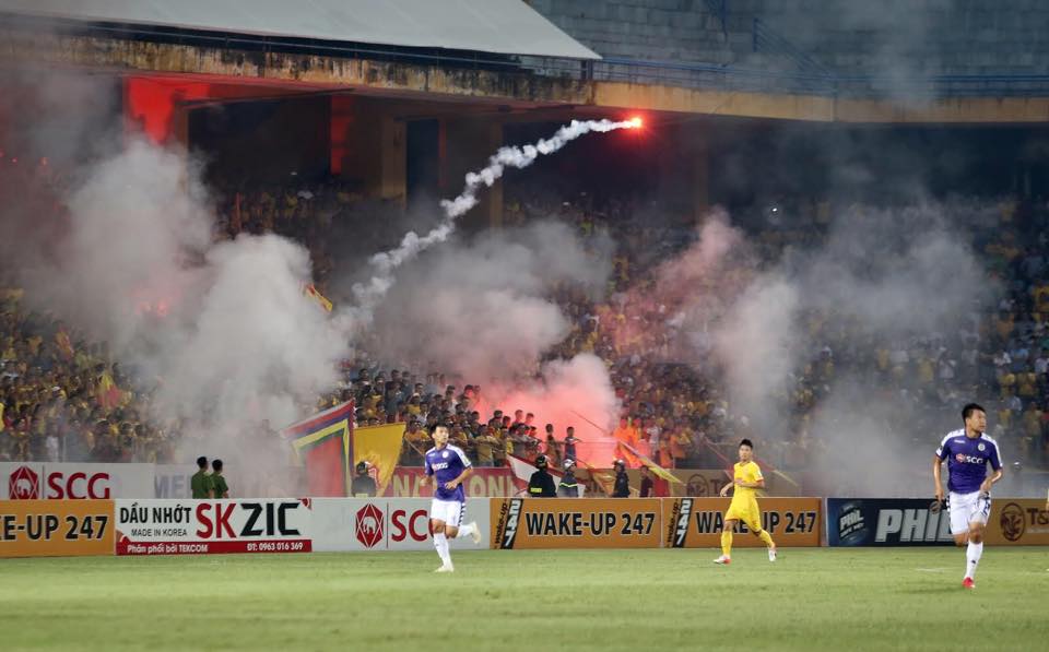 Màn so tài được chờ đợi giữa 2 đội bóng giàu duyên nợ là Nam Định và Hà Nội đã kết thúc với vỏn vẹn 2 chữ “thảm hoạ”. Một cơn mưa pháo sáng, chai lọ được CĐV Nam Định trút xuống sân Hàng Đẫy trong sự bất lực của BTC. Hệ quả là một nữ khán giả phải nhập viện trong tình trạng bị thương nghiêm trọng.