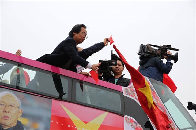 5. Ông Lân Trung “quá khích” trên xe bus đưa U23 Việt Nam đi diễu hành