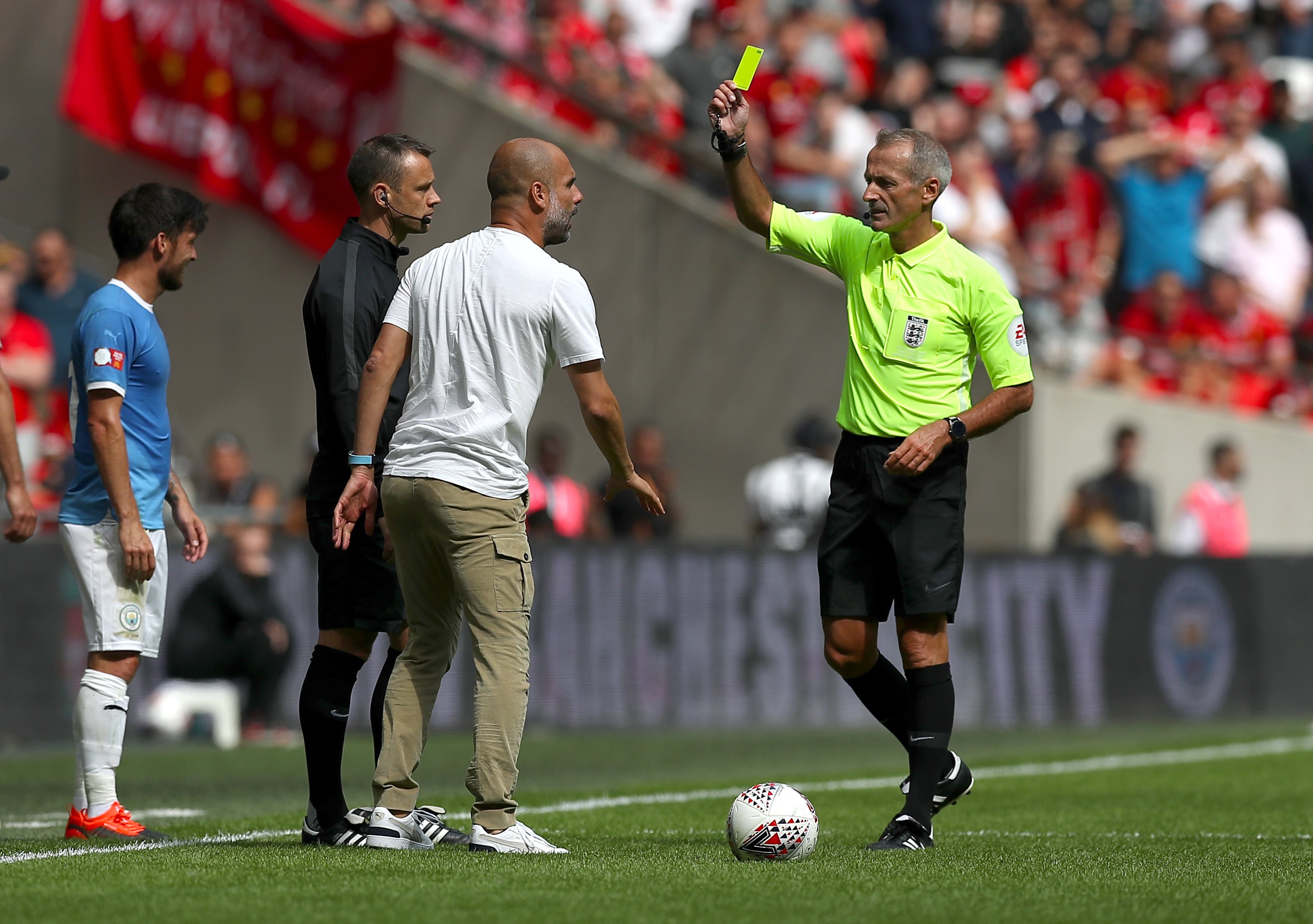 Pep Guardiola trở thành HLV đầu tiên ở giải Ngoại hạng Anh nhận thẻ vàng.