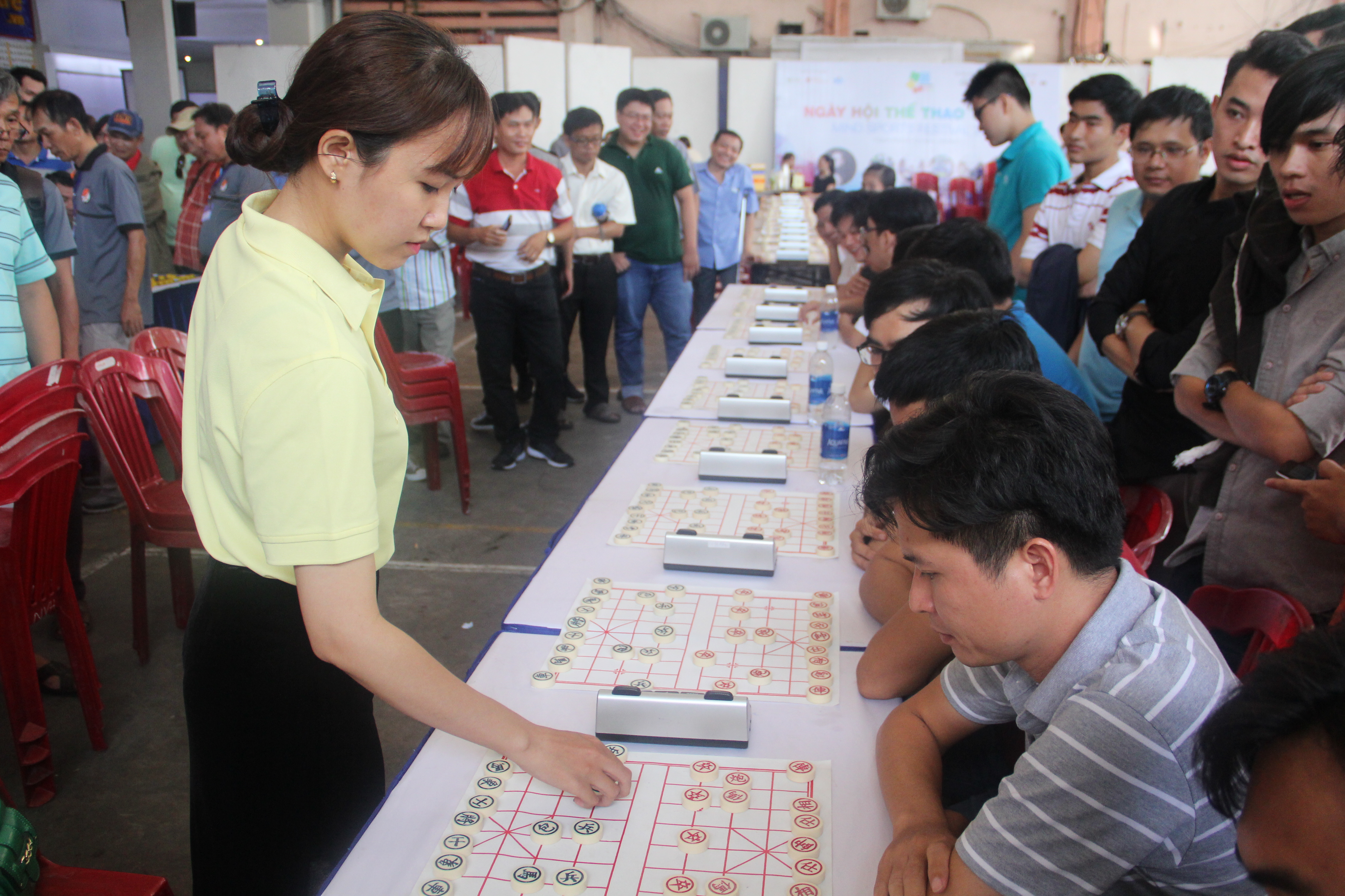 Phương Thanh cùng lúc đấu 10 kỳ thủ tại Ngày hội Thể thao Trí Tuệ.