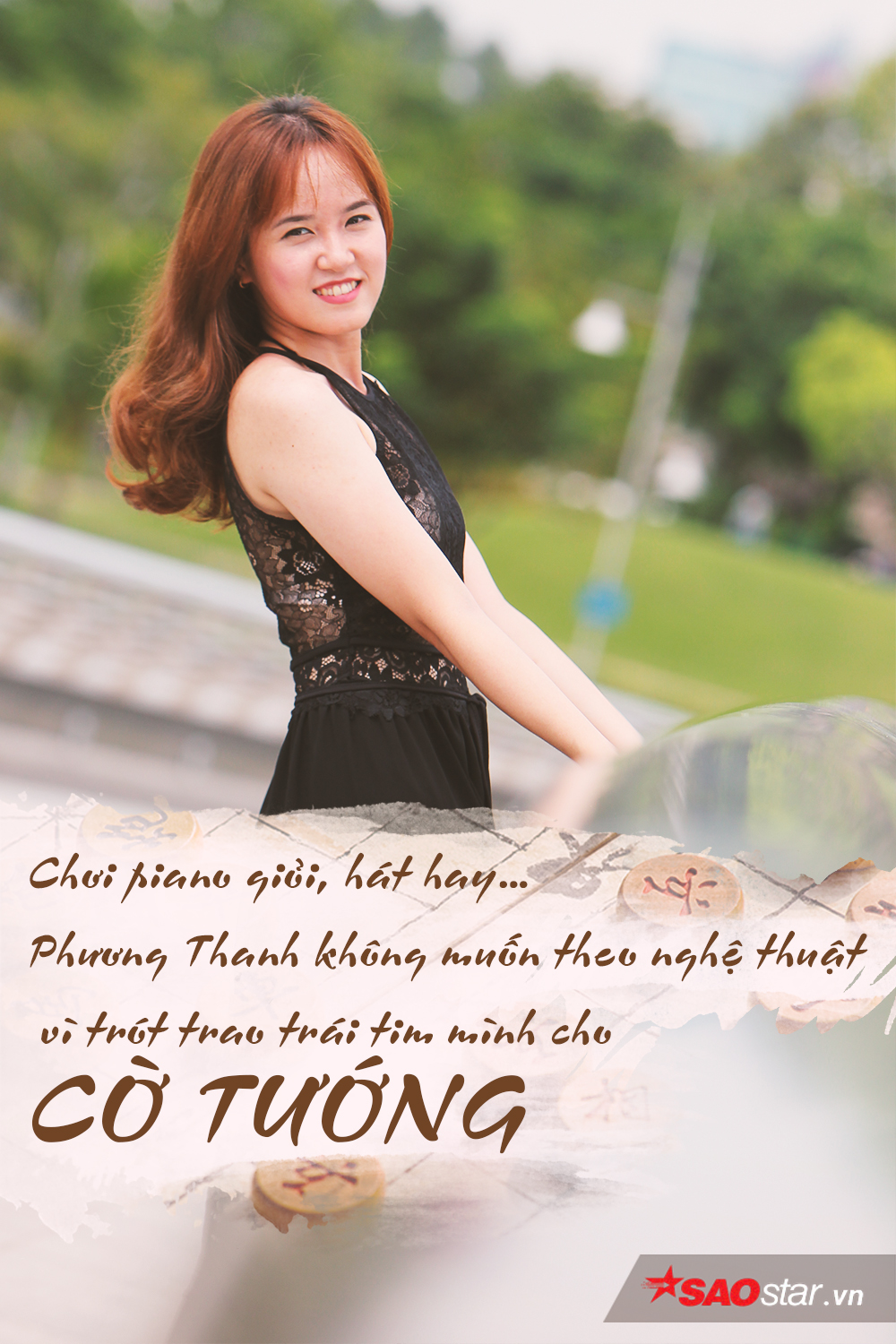 Không chỉ giỏi cờ tướng, Phương Thanh còn có khiếu về nghệ thuật khi chơi đàn piano khá giỏi, lại hát rất hay. Thậm chí một số người bạn còn gợi ý sao không theo đuổi nghệ thuật, người đẹp cao 1m6 lắc đầu vì đã trót trao trái tim mình cho cờ tướng rồi.