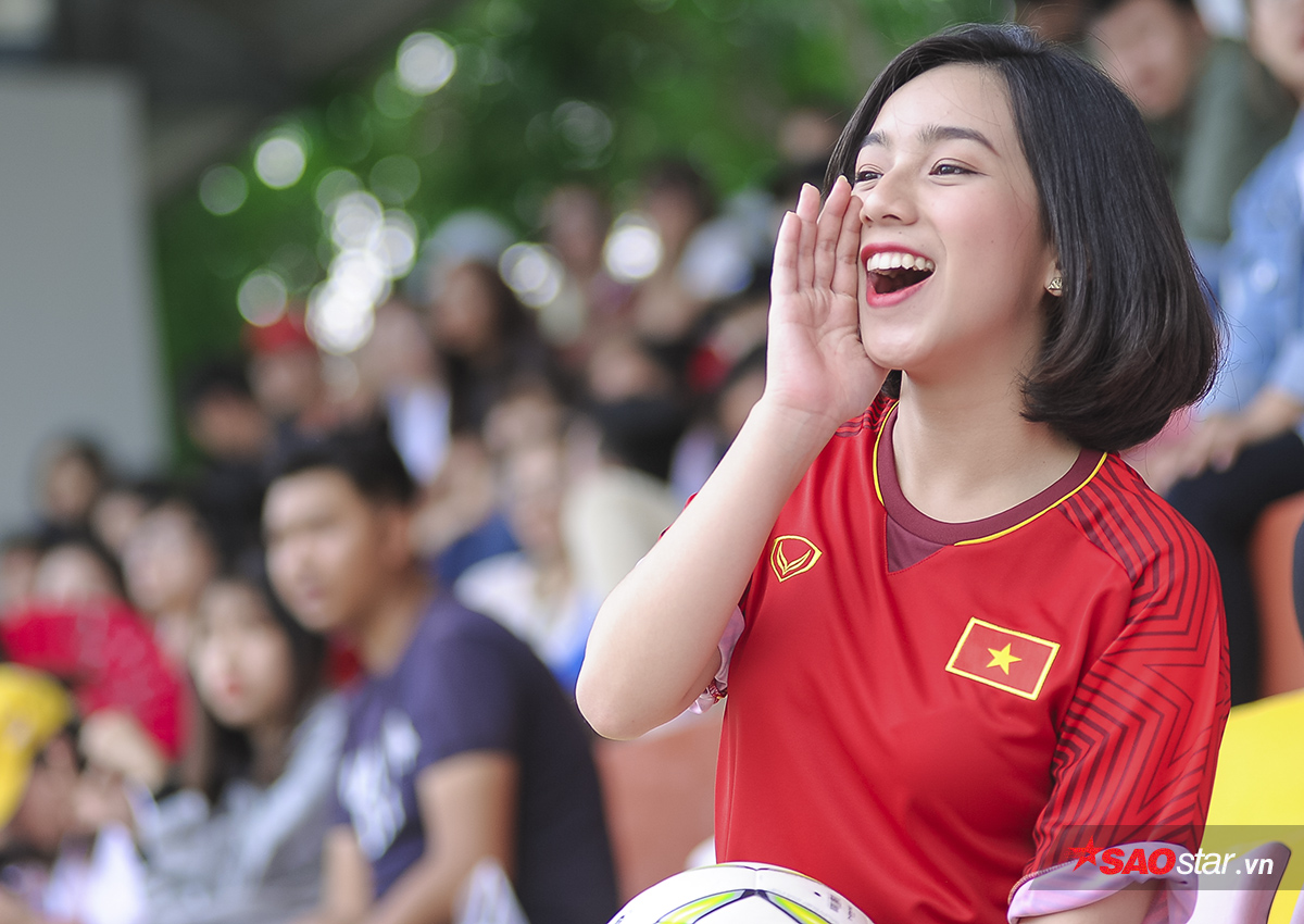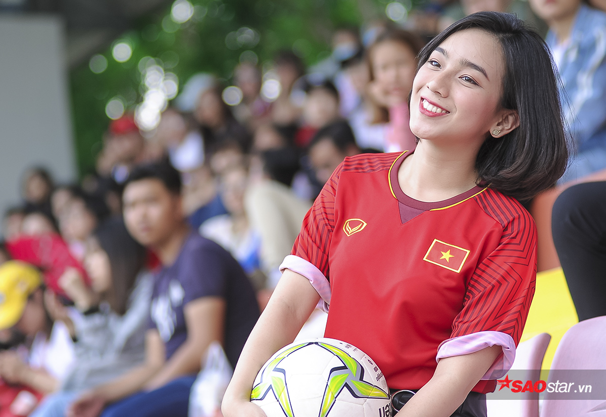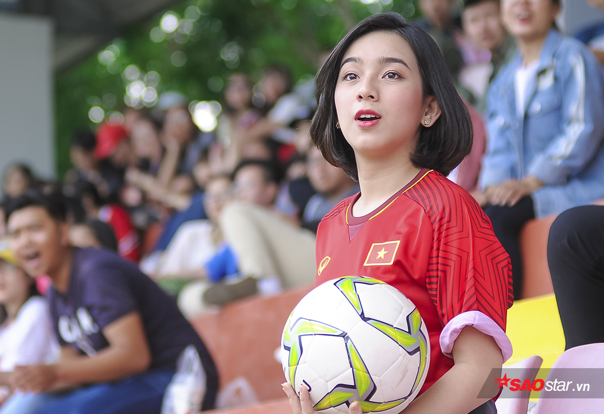 Nhằm “tiếp lửa” cho đội bóng áo đỏ, nữ MC Mai Anh đã thực hiện một bộ ảnh dễ thương trong màu áo đấu của các cầu thủ U23 Việt Nam. Bên cạnh đó, người đẹp cũng tự tin dự đoán một chiến thắng với tỉ số 2-1 cho Công Phượng và các đồng đội.