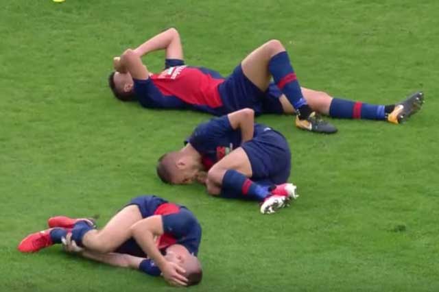 3 cầu thủ dính chấn thương sau 1 pha bóng.