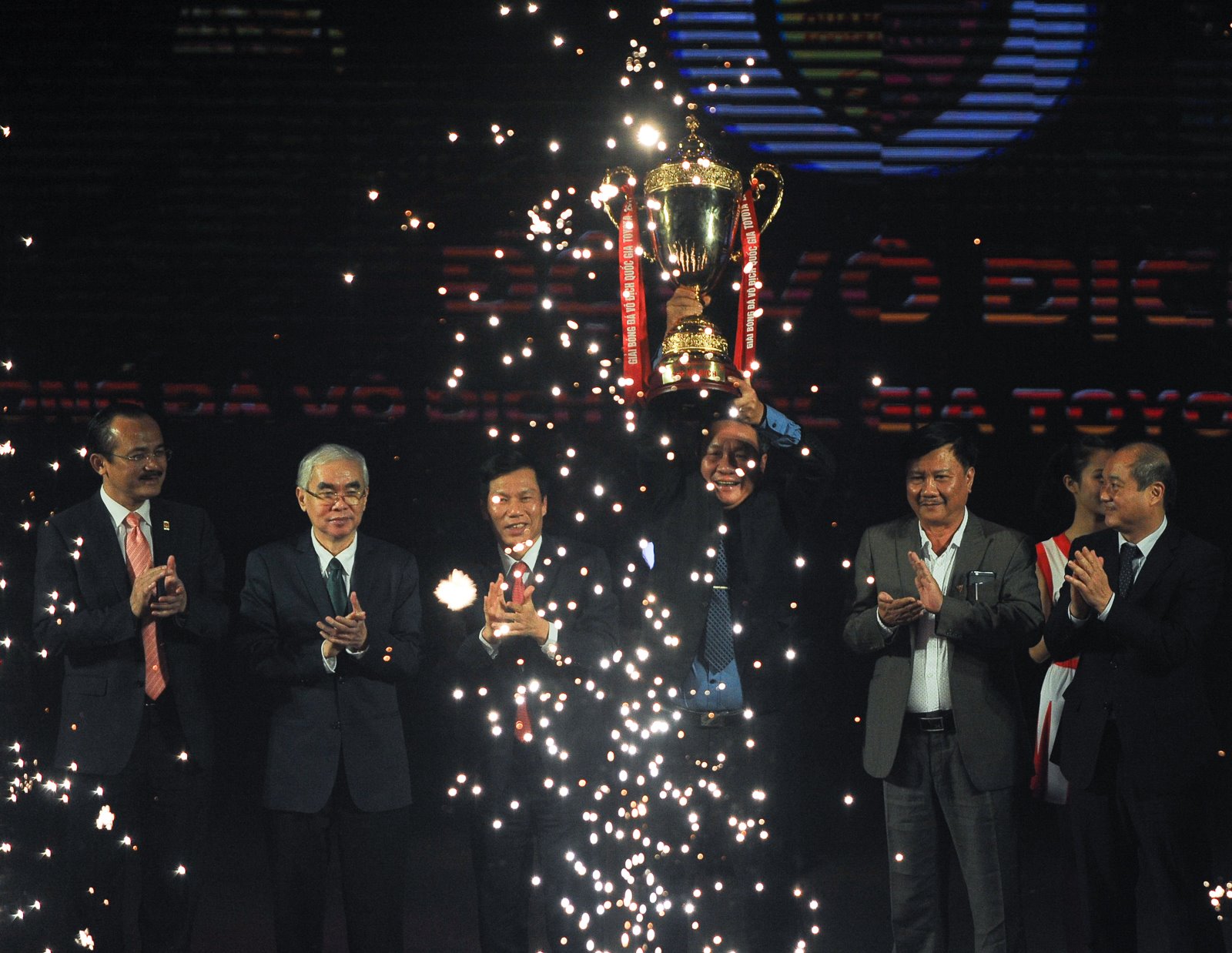 Đại diện của CLB SLNA gồm HLV Nguyễn Đức Thắng và Chủ tịch Nguyễn Hồng Thanh. SLNA là đội bóng giàu thành tích nhất ở Cúp Quốc gia.
