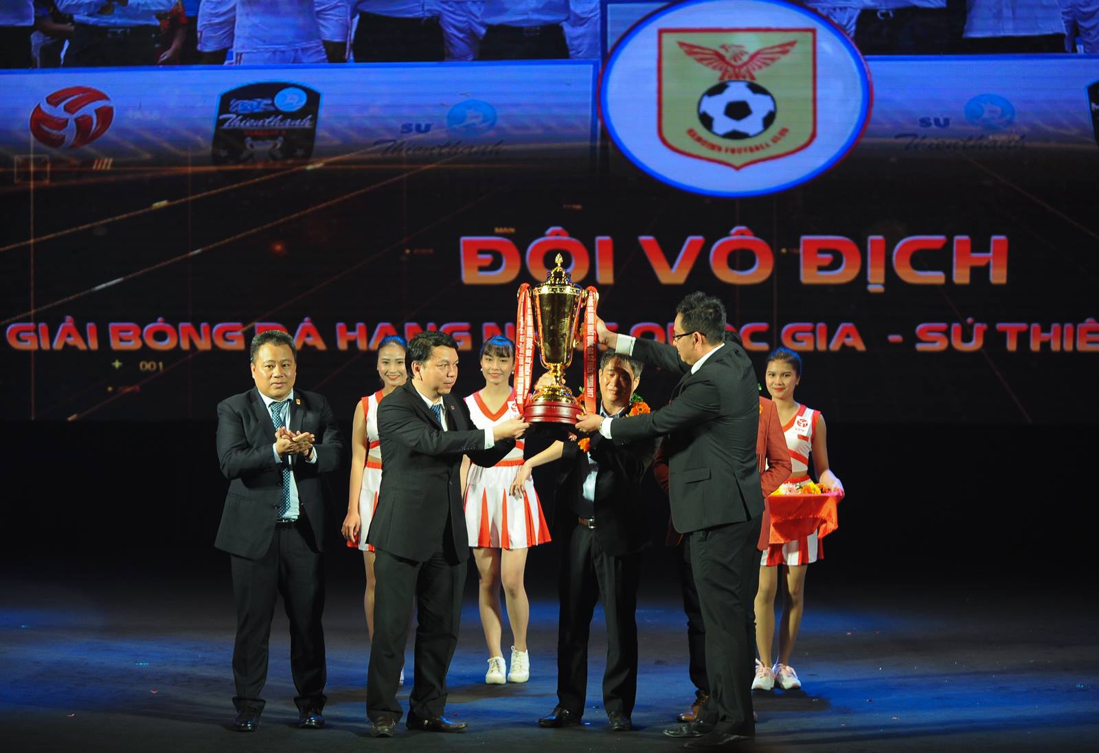 Đại diện CLB Quảng Nam, SLNA cũng có mặt ở Gala để “khoe” Cúp vô địch V.League và Cúp Quốc gia 2017.