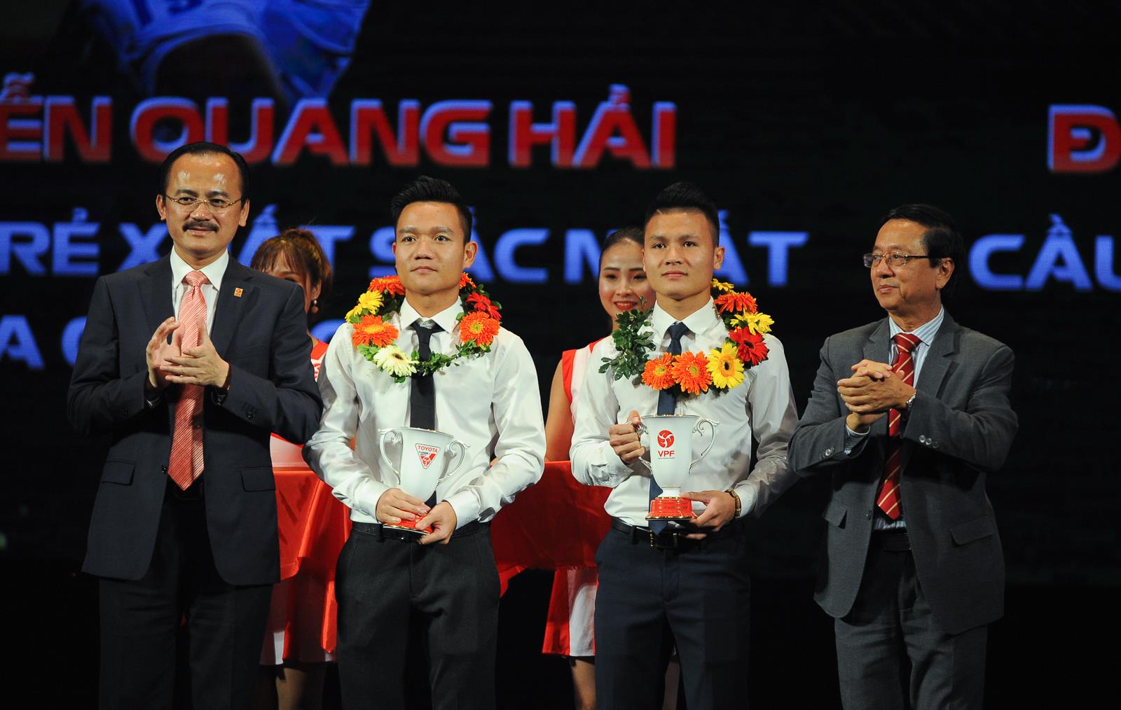 Đinh Thanh Trung là Cầu thủ xuất sắc nhất V.League 2017, còn Quang Hải là Cầu thủ trẻ xuất sắc nhất.