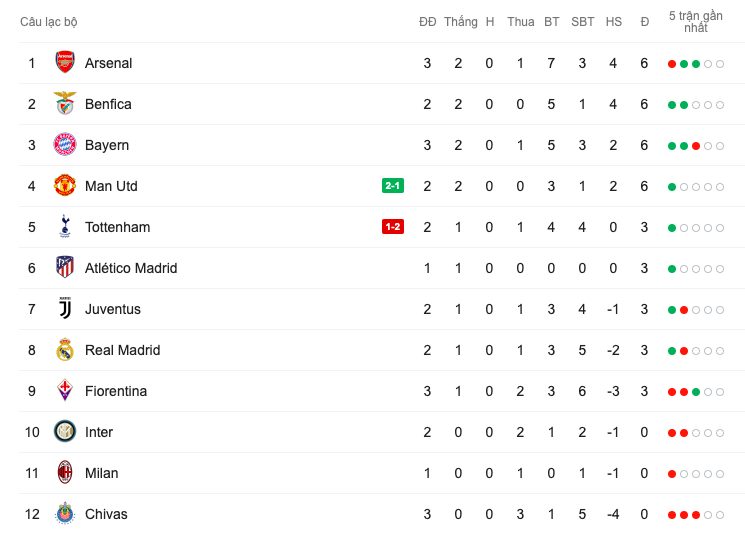 Bảng xếp hạng giải giao hữu ICC.