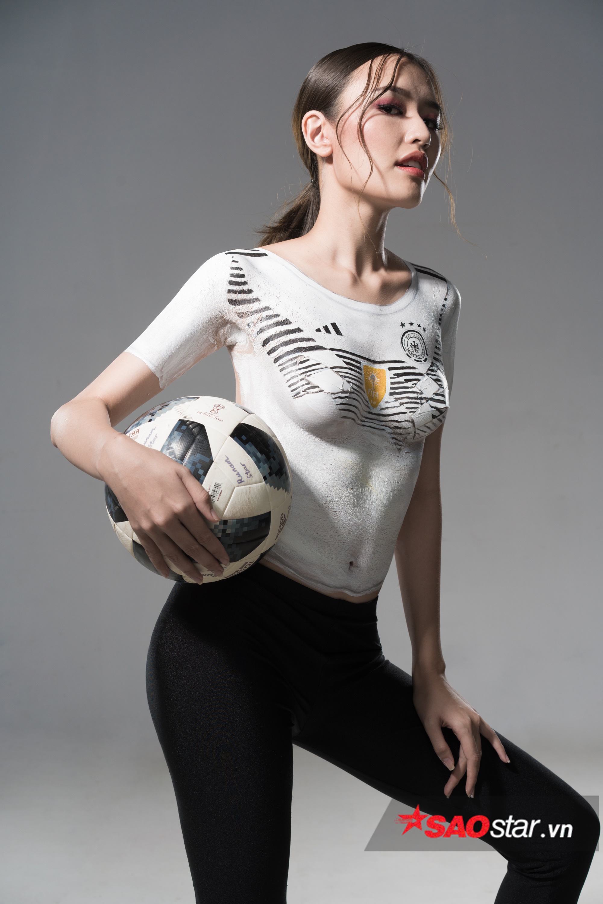 Phương Chi là fan cuồng của Mesut Ozil. (body paint: Ngo Luc, người sản xuất: Đỗ Quang Minh), photo: Dong Hai Nguyen Ly, Make up: Jerry Nguyen).