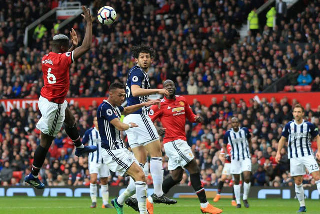 Ở phút 29 trong trận tiếp đón West Brom tại vòng 34 Premier League diễn ra vào tối qua, tiền vệ Paul Pogba của Man United đã có pha chơi bóng bằng tay lộ liễu ngay trước khung thành đối thủ.