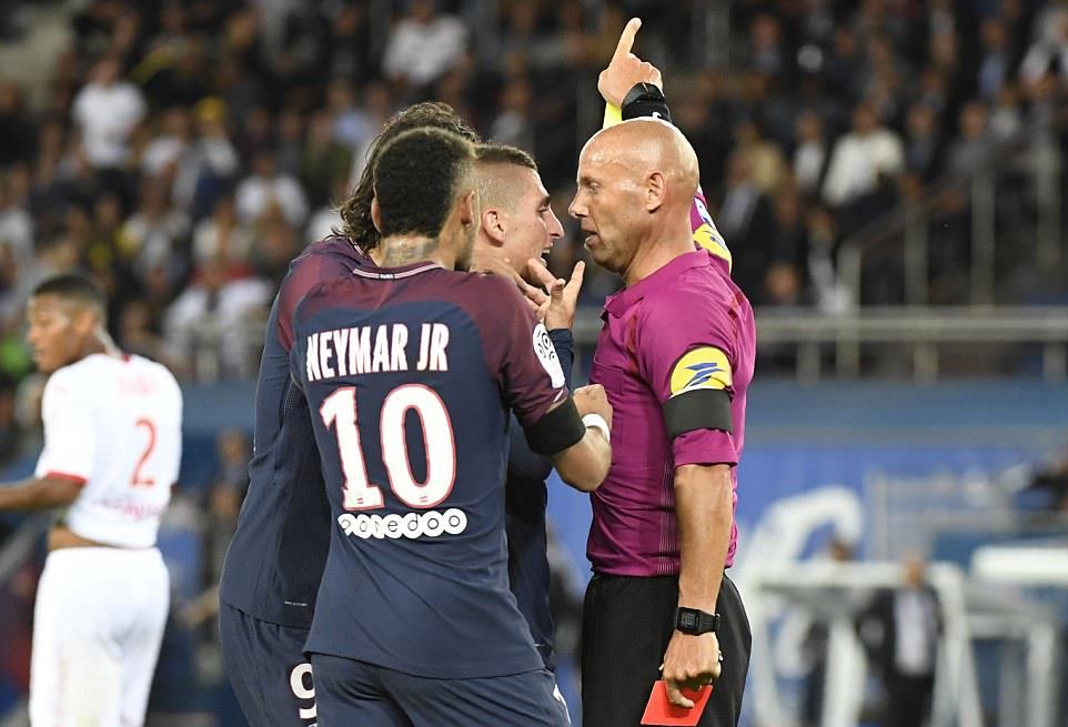 Verratti nhận thẻ đỏ khá nặng tay từ trọng tài.