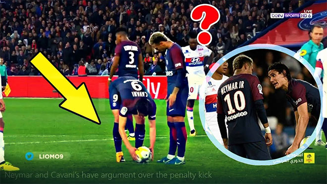 Neymar và Cavani tranh nhau đá phạt đền.