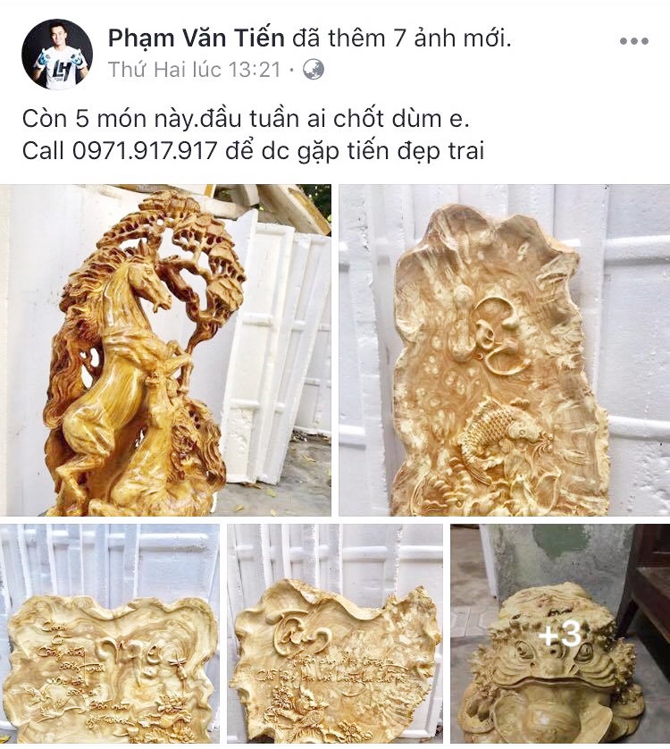 Thủ môn Phạm Văn Tiến kinh doanh gỗ, bán sim điện thoại. Anh liên tục úp số sim, đồ gỗ lên mạng facebook cá nhân.