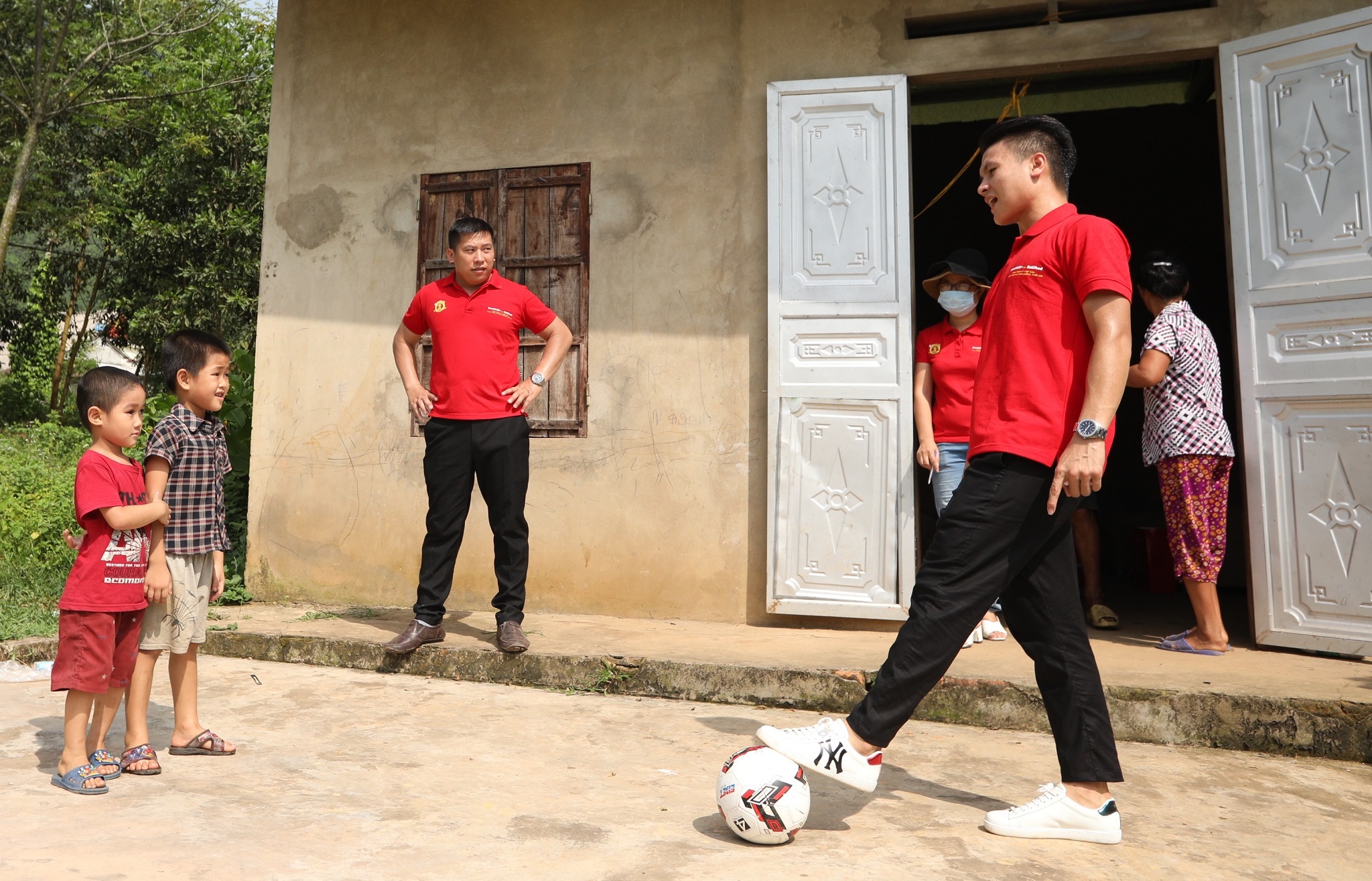 Quang Hải truyền cảm hứng cho những em bé có hoàn cảnh khó khăn muốn trở thành cầu thủ.