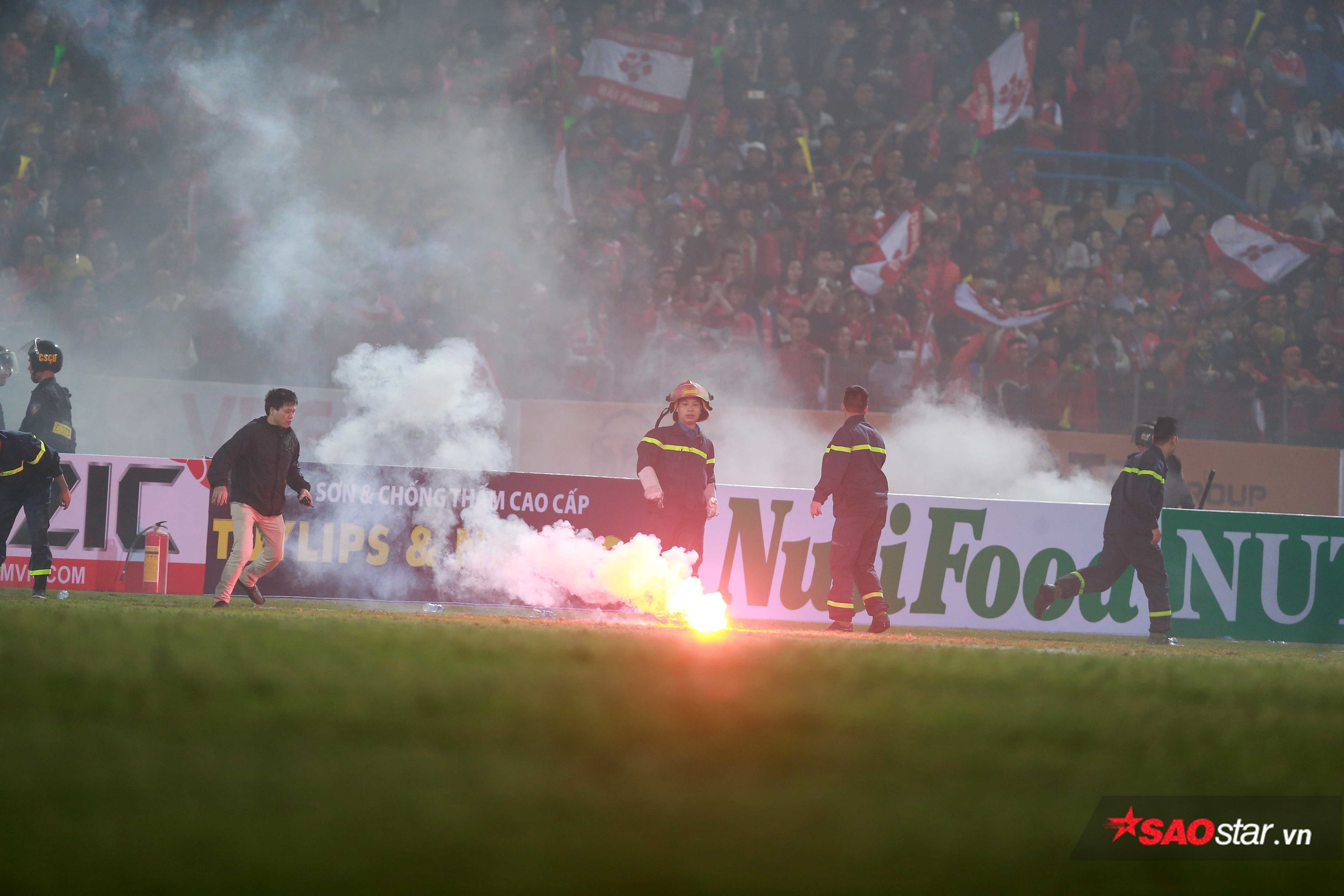 Điểm nhấn lớn nhất chính là CĐV Hải Phòng đốt pháo sáng và làm “loạn” sân Hàng Đẫy. Họ đã để dành vài quả pháo sáng ném xuống sân ở phút bù giờ cuối cùng, khiến cho trận đấu phải tạm ngưng và trọng tài chính đành thổi còi kết thúc trận đấu, khi thời gian chỉ còn tính bằng giây.