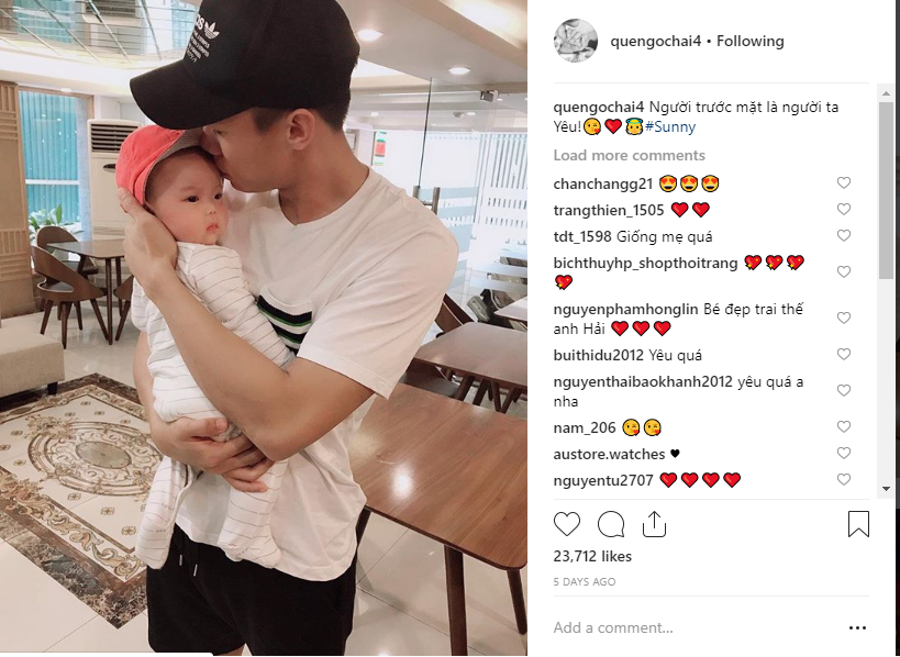 Trung vệ này thường xuyên đăng ảnh về con và vợ trên trang cá nhân của mình. Kể cả trước trận chung kết khốc liệt với Malaysia, Ngọc Hải vẫn không quên đăng trên story instagram với caption “thiên thần của tớ” cùng bức ảnh dễ thương của con mình.