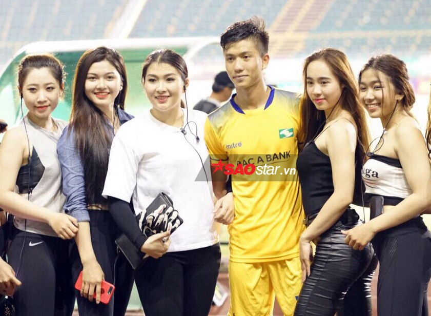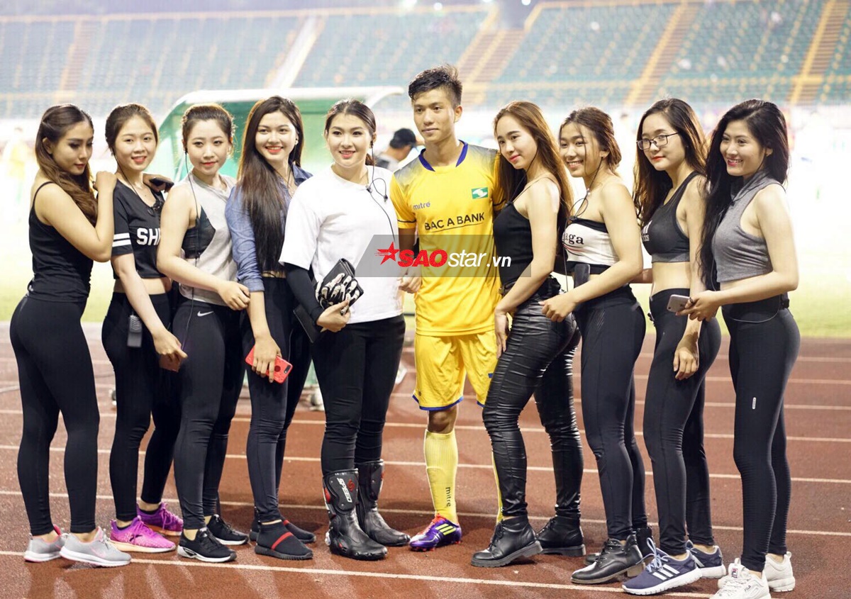 Các cô gái hot girl xuống chụp ảnh cùng Phan Văn Đức.