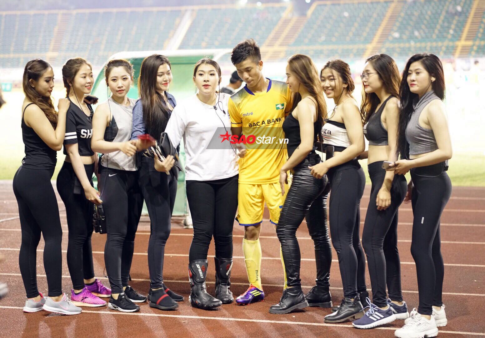 Sau trận đấu giữa Cần Thơ và SLNA, dàn hot girl hội mô tô Cần Thơ đã có cơ hội được chụp ảnh với hai ngôi sao nổi tiếng là Quế Ngọc Hải và Phan Văn Đức. Hai cầu thủ xứ Nghệ tỏ ra khá hào hứng khi được những cô gái xinh đẹp xin chụp ảnh.