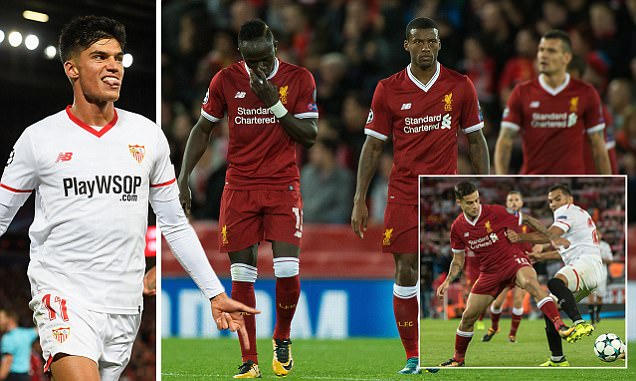 Tuy nhiên mục đích của đội chủ sân Anfield còn chưa định hình thì họ bất ngờ bị thủng lưới ngay phút thứ 5. Xuất phát từ đường tạt bóng đơn giản của một cầu thủ Sevilla, Lovren cắt hụt bóng quá vô duyên giúp Ben Yedder đệm bóng dễ dàng mở tỷ số cho đội khách.