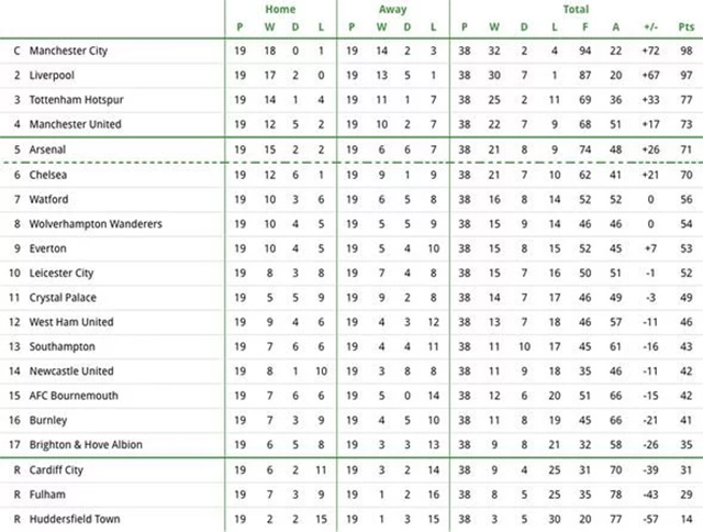 BXH chung cuộc EPL mùa 2018/2019 theo dự đoán của siêu Robot.