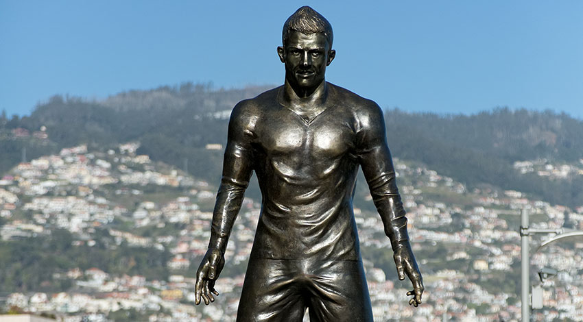 Còn nhớ tại Quảng trường Biển (Praça do Mar), thành phố biển Funchal ngày 21/12/2015, bức tượng Ronaldo bằng đồng cao 3,4m, nặng hơn 3 tấn lừng lững nhìn ra biển đã được dựng lên bởi nhà điêu khắc Ricardo Veloza. Nhưng “điểm nhấn nghệ thuật” lớn nhất của bức tượng lại là “cái đó quá to”, khiến cho người ta ai cũng phải chú ý. Quả thực, Ronaldo luôn biết cách khoe “cái dung tục” của mình một cách tế nhị và hiệu quả nhất.