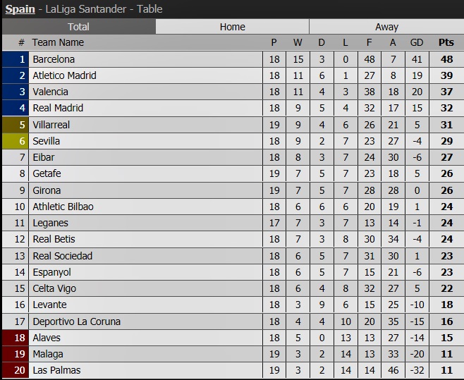Bảng xếp hạng La Liga sau trận thua của Real.
