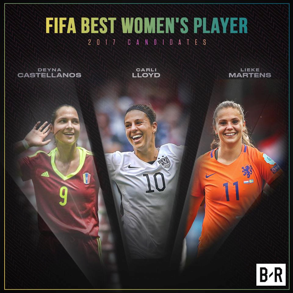 Deyna Castellanos (Venezuela), Carli Lloyd (Mỹ) và Lieke Martens (Hà Lan) là 3 ứng viên cho danh hiệu The Best của bóng đá nữ.