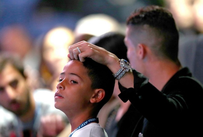 CR7 không quên dành những cử chỉ thương yêu dành cho cậu con trai mình.