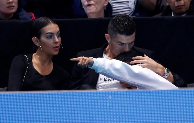 Ngôi sao Cristiano Ronaldo vừa có mặt cùng bạn gái Georgina Rodriguez và con trai để xem trận đấu quần vợt thuộc giải ATP Finals Nitto tại O2 Arena diễn ra đêm 12/11. Đáng chú ý, tiền đạo CLB Juventus đã có màn trổ tài như một thủ môn khi quả bóng tennis bay lên khán đài.