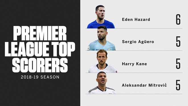 Ngoài việc ghi bàn thắng vào lưới Liverpool để vươn lên dẫn đầu danh sách ghi bàn giải Ngoại hạng Anh với 6 bàn, Eden Hazard còn sở thành tích đáng nể về khả năng dứt điểm chuẩn xác. Trận gặp Liverpool, Hazard chỉ cần tung ra đúng 2 cú sút đã có được 1 bàn thắng.