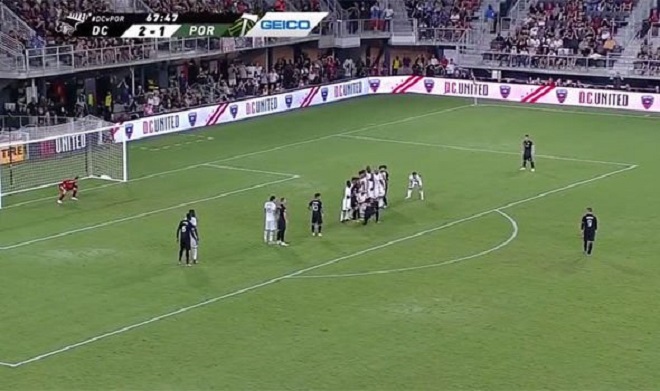 Bước sang hiệp 2, Rooney một lần nữa điền tên mình lên bảng tỉ số bằng cú sút phạt mẫu mực nâng tỉ số lên 3-1. Trước đây khi từng thi đấu tại Premier League, không ít lần Rooney từng ghi những bàn thắng kiểu như vậy. Bàn thắng này gần như chấm dứt mọi hy vọng từ đội khách Portland.