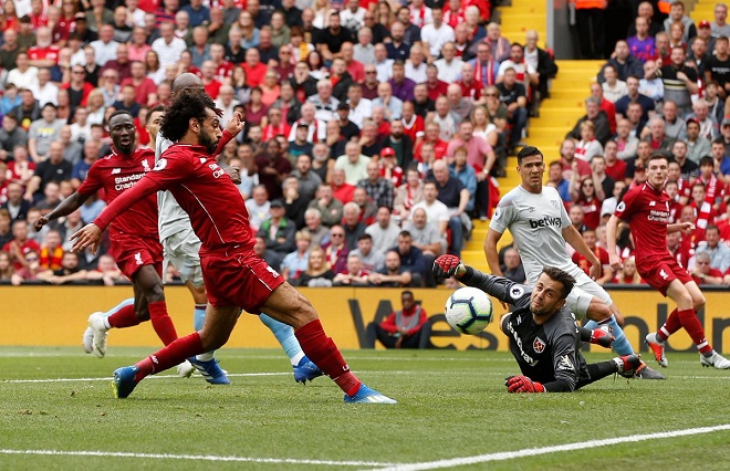 Thế nhưng, đoàn quân HLV Juergen Klopp chẳng mất nhiều thời gian để có bàn mở tỉ số. Phút 20, hậu vệ Robertson thoát xuống hành lang cánh trái rồi thực hiện đường căng ngang thuận lợi cho Mohamed Salah. Tiền đạo người Ai Cập dễ dàng đệm bóng vào lưới West Ham.