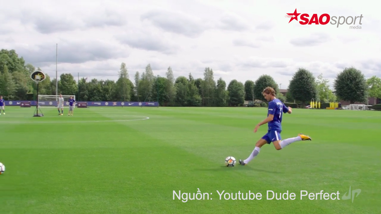 Các chân sút Chelsea đã có màn kết hợp ăn ý với ngôi sao Youtube Dude Perfect để đem đến cho người hâm mộ những màn trình diễn “cực dị - cực chất” với trái bóng.