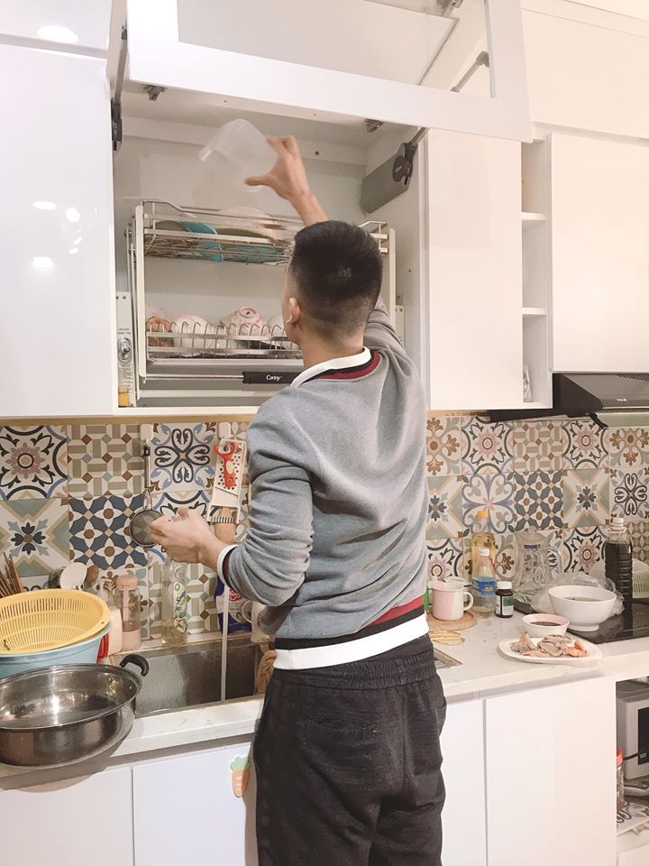 Thuỳ Dương đăng ảnh Huy Hùng giúp mình rửa bát trên mạng xã hội. Ảnh: FBNV.