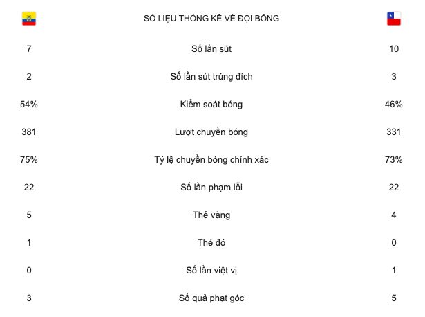 Chile nhập cuộc với sự tự tin và lợi thế vượt trội trước đối thủ Ecuador.
