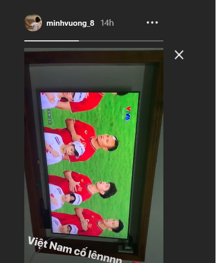 Tiền vệ Minh Vương cũng đăng tải trên story : “Việt Nam cố lên” khi ở nhà xem trận đấu giữa ĐT Việt Nam vs Malaysia qua màn ảnh nhỏ. Dù bị loại khỏi danh sách 23 cầu thủ, nhưng Minh Vương vẫn luôn theo dõi và ủng hộ hết mình thể hiện tình yêu với ĐTVN.