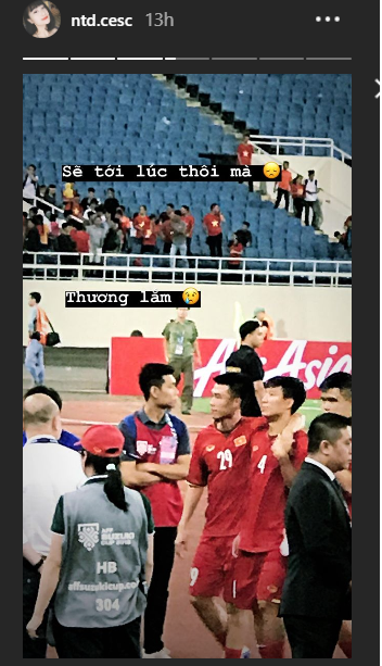 Đến sân xem ĐTVN thi đấu không thể thiếu dàn bạn gái xinh đẹp của các cầu thủ. Khác với niềm vui mừng của bao người, Thùy Dương - bạn gái Huy Hùng, chia buồn cho bạn trai khi không được ra sân thi đấu : “Thương lắm. Sẽ tới lúc thôi mà”.