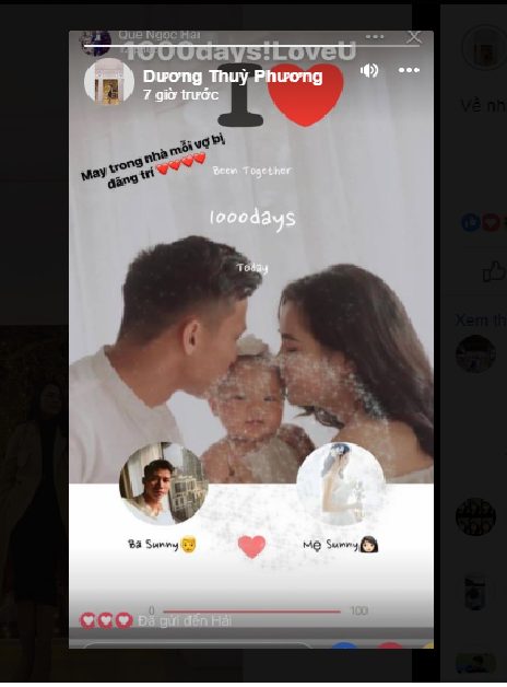 Mới đây, Hải Quế đã đăng trên dòng story bức ảnh đánh dấu 1000 ngày yêu nhau với cô hoa hậu xứ Nghê. Song, không biết vì lý do gì, dòng story đó mau chóng bị xóa. Dẫu vậy, bà xã Thùy Phương đã kịp chụp lại story đó và đăng lại trên story trang cá nhân của mình.
