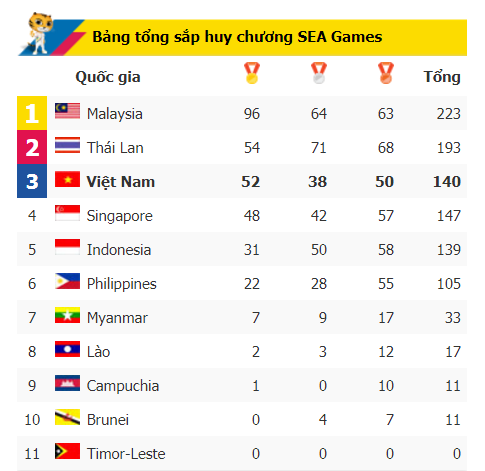 Bảng xếp hạng SEA Games 29