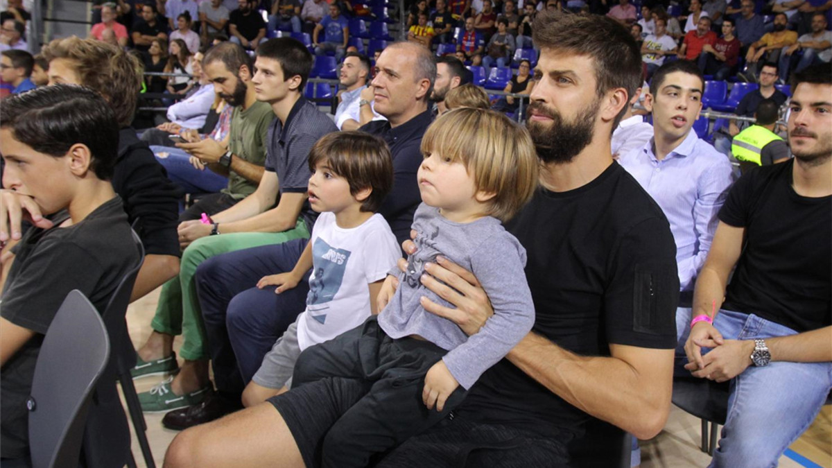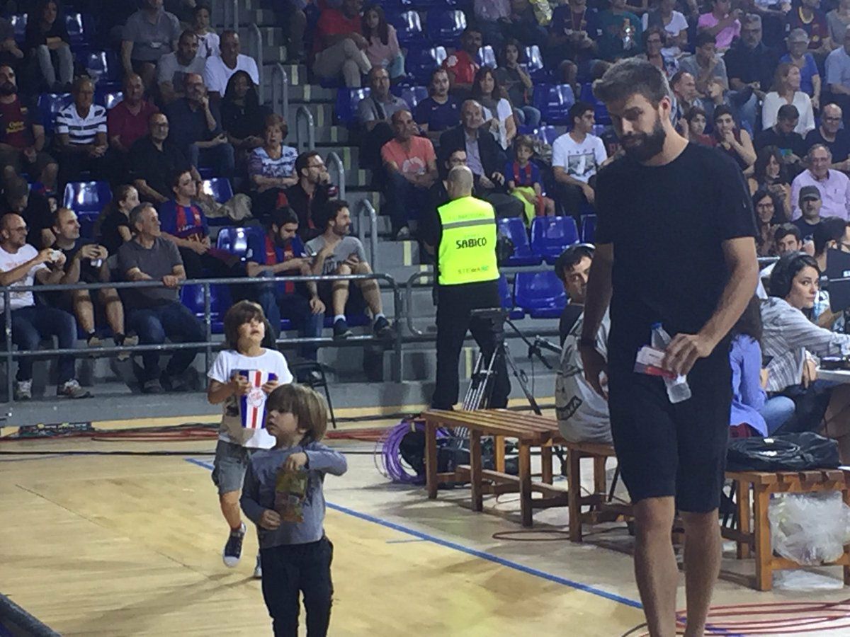Tranh thủ một ngày rảnh rỗi, trung vệ Gerard Piqué đã tới trường đón 2 con nhỏ, rồi dẫn các bé đến xem trận đấu giữa Barça Lassa với Panathinaikos ở Euro League. Bạn gái Shakira của trung vệ Barcelona không có mặt, càng làm dấy lên nghi ngờ cặp đôi này đã đường ai nấy đi.
