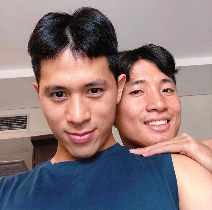 Đình Trọng hạnh phúc trong vòng tay Tư Dũng trong buổi offline. (Ảnh của Ted Trần)