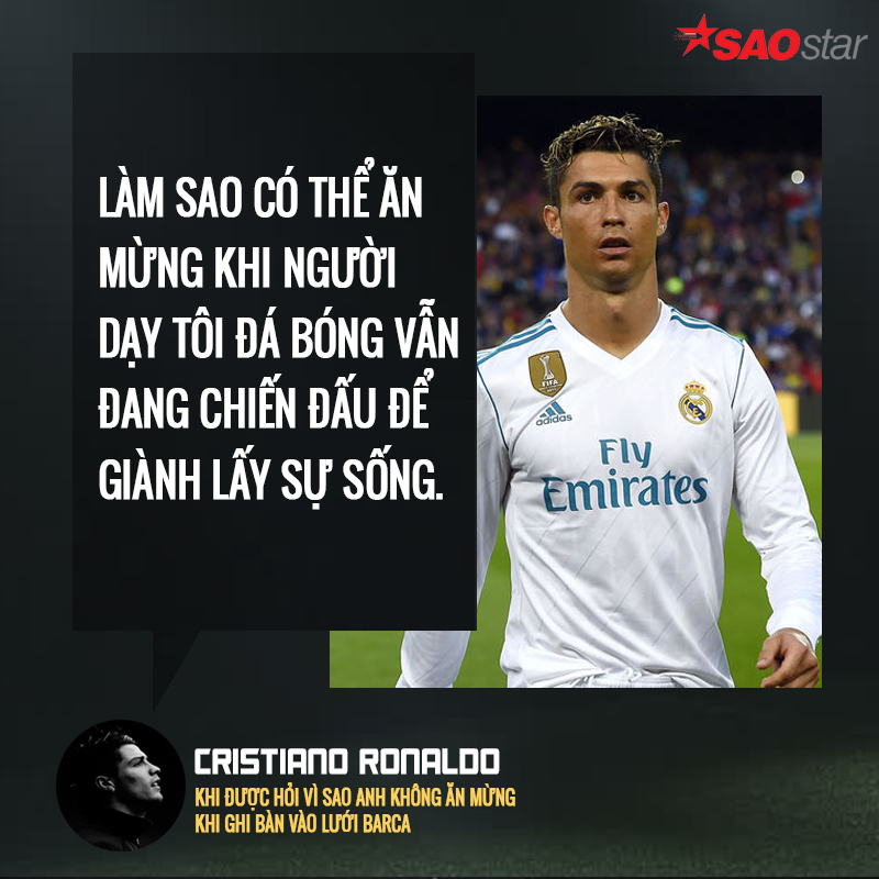 Ngay sau đó, CR7 cùng Real Madrid bước vào trận đấu với Barcelona trên sân vận động Noucamp, ngôi sao người Bồ Đào Nha đã để lại dấu ấn khi ghi bàn san bằng tỉ số 1-1 cho kền kền trắng. Điều đặc biệt không được thấy trước đây khi anh ghi bàn vào lưới Barca, Ronaldo đã không ăn mừng bàn thắng này. Và khi được các phóng viên đưa ra thắc mắc, CR7 thẳng thắn trả lời rằng anh không ăn mừng bởi vì người thầy đáng kính Sir Alex vẫn đang trên bàn mổ để chiến đấu tử thần.