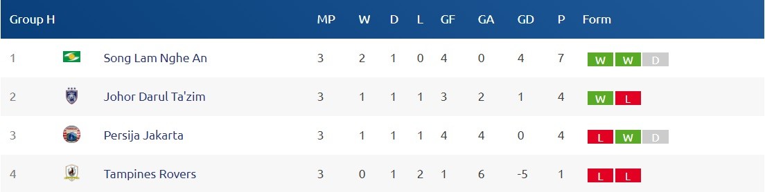 Bảng xếp hạng bảng H AFC Cup 2018 ngày 6/3.