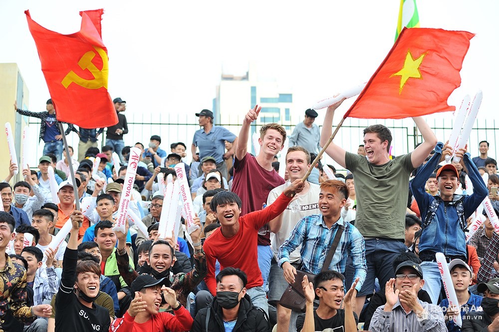 Khán giả lấp kín SVĐ Vinh. Ảnh: BNA